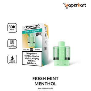 Elevate your vaping experience with Crystal Pro Switch 30K Prefilled Pods, designed exclusively for the Crystal Pro Switch 30K Vape Kit. Each pod set offers a massive combined e-liquid capacity of 22ml with dual 2ml prefilled pods and two 10ml refill containers, delivering up to 30,000 smooth puffs.