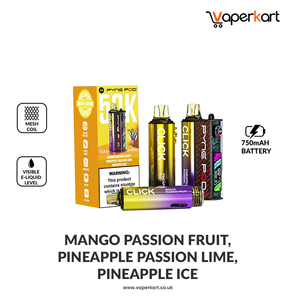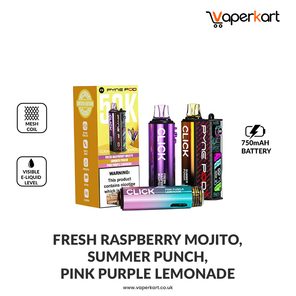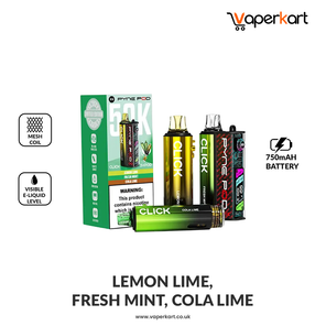 Equipped with three 2ml prefilled pods and three 10ml magnetic refill containers containing 20mg nicotine salt e-liquid, the Pyne Pod Click 50K delivers rich, smooth MTL (Mouth-To-Lung) hits with dual power modes—Regular (10W) for daily use and Boost (20W) for a more intense flavour and cloud output. The advanced mesh coil technology ensures consistent flavour and vapour production, while USB Type-C fast charging gets you back to vaping quickly.